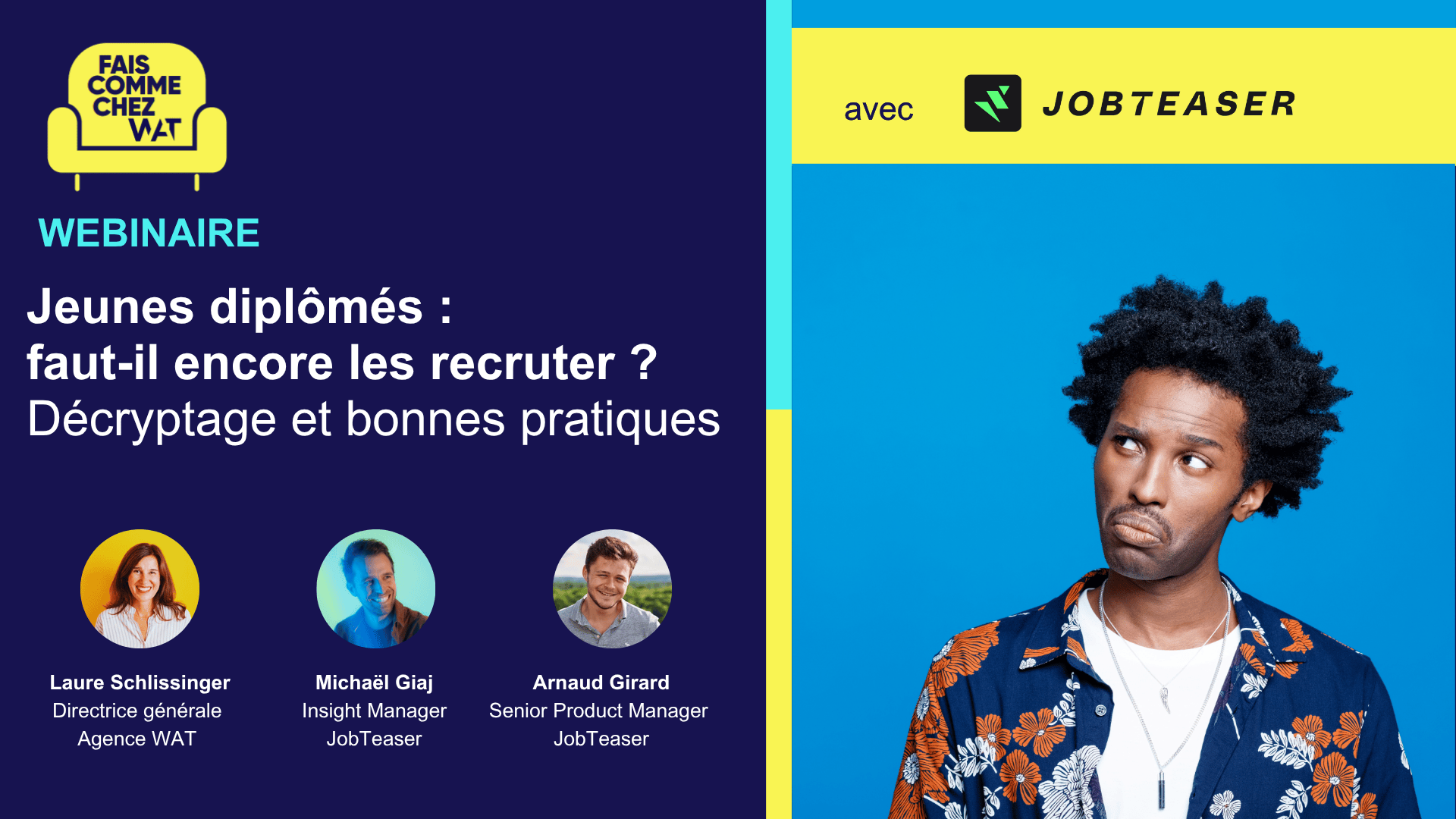 Bref, le recrutement évolue… parfois plus vite que nos pratiques. Lors de ce Fais comme chez WAT, nous décryptons la nouvelle étude JobTeaser, menée avec l’EDHEC, auprès de 2 500 étudiants. Au programme, un décryptage concret de ce qui fait vraiment la différence aujourd’hui pour recruter les jeunes talents :