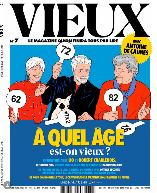 C’est également ce qu’incarne le média digital Mesdames Média de Maitena Biraben ou le magazine VIEUX d’Antoine de Caunes. Un papier trimestriel qui dépoussière l’image de la vieillesse et traite des sujets d’actualité sous le prisme de l’âge. Preuves qu’on peut assumer son âge tout en restant visible,influent et inspirant, sur les réseaux comme dans les médias.