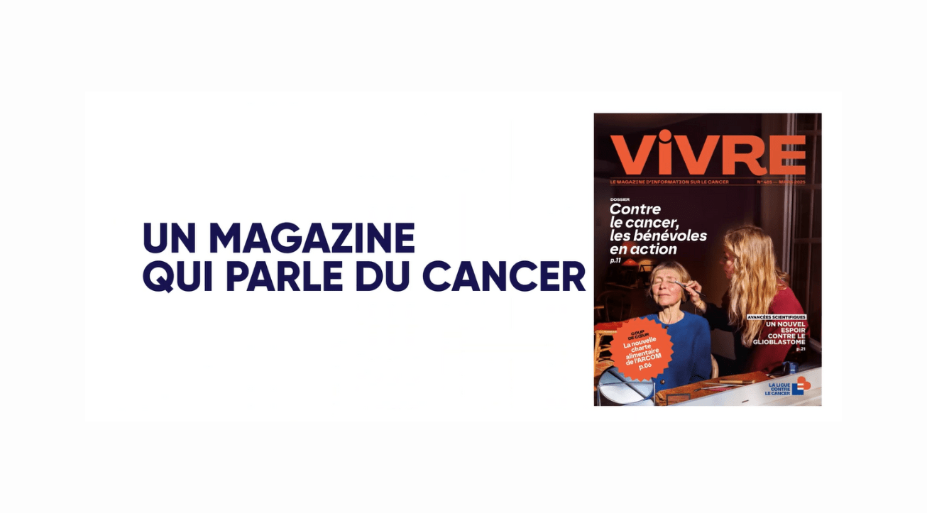 Depuis plus de 100 ans, la Ligue contre le cancer agit pour que la maladie n’isole plus jamais. À travers son magazine VIVRE, elle tisse un lien fort avec les personnes touchées par la maladie, leurs proches et toutes celles et ceux qui refusent de détourner les yeux.